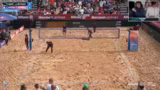 09:09:59Das erste Viertelfinalspiel verläuft intensiv mit längeren Ballwechseln. Yannick Kühlborn zeigt eine starke Defensive und sammelt früh viele Blocks. Jonas Kaminski agiert als stabiler Zuspieler. Nach einem sehr langen Ballwechsel kommt es zu einer kontroversen Netz-Challenge von Kühlborn, die jedoch nicht erfolgreich ist. Yannick Kühlborn dominiert das Spiel und führt sein Team zu einem klaren Satzgewinn von 21:17. Seine überlegene Leistung wird hervorgehoben, insbesondere sein Verhalten im Netz.