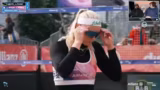 04:13:18Das Spiel nimmt im dritten Satz an Dramatik zu. Die Bedingungen in Berlin sind wild, mit wechselnden Regenschauern und plötzlicher Sonne. Melanie Paul übernimmt nun das Kommando im Angriff, was der Streamer als 'Wahnsinn' bezeichnet. Sarah Schulz verteidigt extrem stark, doch das Spiel bleibt bis zum Ende spannend. Es gibt eine weitere erfolgreiche Challenge, was zusätzliche Spannung erzeugt. Beide Teams kämpfen mit vollem Einsatz um den Einzug ins Halbfinale, wobei der Zuseher einerseits die sportliche Hochspannung und andererseits die unangenehmen Wetterbedingungen für die Spieler mitempfindlich verfolgt.
