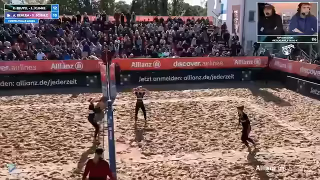 10:43:07In diesem Teil des Streams konzentriert sich der Kommentator auf die Live-Situation des Beachvolleyball-Spiels. Er gibt detaillierte Anweisungen, um die Kamera auf bestimmte Spieler wie Niklas Held zu richten, und analysiert das Spielgeschehen intensiv. Er spricht über die Leistung der Spieler, wie Philipp Huster und Momme Lorenz, und gibt Einschätzungen zu deren Spielzügen. Dabei interagiert er stark mit dem Chat, bittet um Hilfe bei der Orientierung und unterhält sich mit den Zuschauern über das Fantasy-Team und die laufende Wette.