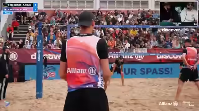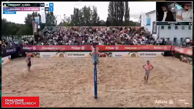 03:28:37Im dritten Satz zeigt Robin Sova anscheinend eine schwächere Leistung, was der Streamer kommentiert. Es gibt eine Diskussion über die Führung im Spiel und Erik Stadis durchgängig starke Sideout-Leistung. Jonas und Robin haben nach längerem Kampf die Oberhand und zeigen, dass sie mental stark sind. Trotz der Bemühungen von Erik und Jannik können sie das Spiel nicht mehr für sich entscheiden. Am Ende gewinnen Jonas und Robin nach drei Sätzen, was für Streamer und Publikum eine große Enttäuschung ist, da Erik und Jannik zu Hause in Berlin klar favorisiert waren.