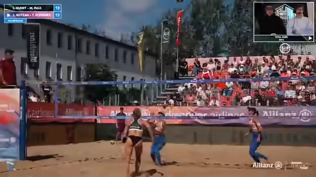 06:58:27Lea Barba liefert eine beeindruckende Leistung und wird von Kommentatoren als MVP (Most Valuable Player) des Turniers in Berlin gehandelt. Kunz und Paul erhalten Matchball und haben die Chance, den Back-to-Back Titel zu gewinnen. Die Spannung erreicht ihren Höhepunkt als das Spiel in die Overtime geht. Kommentatoren sind beeindruckt von der Qualität des Spiels, das als perfekter Beispiel für Beach Volleyball bezeichnet wird. Die Emotionen bei den Spielerinnen steigen, besonders bei Melanie Paul nach ihrer Sperre.