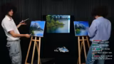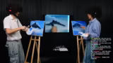 01:25:34Der Fokus liegt auf dem Malprozess selbst. Der Streamer erklärt den Versuch, ein Ufer und eine Wasserreflexion zu malen, was als technisch herausfordernd gilt. Es kommt zu Diskussionen über die richtige Farbgestaltung, insbesondere beim Mischen von Grün- und Gelbtönen. Co-Streamer Chad kämpft mit dem Mischer, während Jonas Motivationssprüche wie 'Das ist easy' verwendet. Neben dem kreativen Geschehen werden auch technische Probleme, wie Sound- und Verständnisschwierigkeiten im Chat angesprochen und versucht zu beheben.