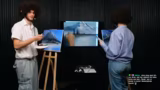 00:12:37Bevor mit dem Malen begonnen wird, stellen die Moderatoren fest, dass sie über die notwendige Ausrüstung nur unzureichend informiert sind. Sie haben Leinwände und Farben in einem Baumarkt gekauft, wissen aber nicht, wie bestimmte Hilfsmittel wie ein Spachtel oder eine spezielle Palette korrekt verwendet werden werden. Außerdem wird ein Problem mit dem Ton bemerkt: das Mikrofon von Janni ist leise und der Ton des Bob Ross Tutorials ist für die Zuschucker nicht hörbar, was die Kommunikation erschwert.
