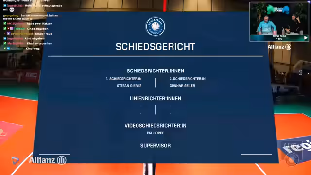 01:43:33Besondere Spielzüge wie ein 'Huhn' und ein extrem harter Lobbe werden als besondere Highlights erwähnt. Gleichzeitig wird eine 'bodenlose Schiedsrichterentscheidung' kritisiert, die zu großer Verwirrung und einem für das Bingo 'unglücklichen' Ausgang führte. Eine Challenge wird als 'völlig zu Unrecht' bewertet, was zu einem Punktverlust für Dachau und allgemeinem Unmut im Stream führt. Die wiederholten unklaren Schiedsrichterentscheidungen werden als langjähriges Problem im Volleyball-Streaming thematisiert.
