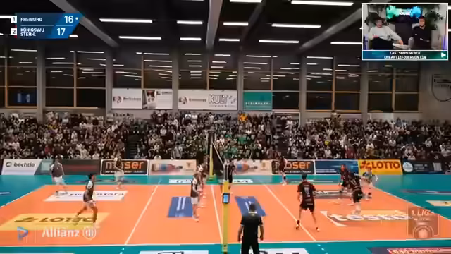 01:14:33Freiburg kämpft sich nach einem Timeout ins Spiel zurück, während Netzhopper nach zwei schnellen Breaks ins Wanken gerät. Der Netzhopper-Aufschlag ist zwar solide, aber nicht dominant genug, um das Blatt wenden zu können. Freiburg nutzt seine Chance, führt plötzlich, aber Netzhopper kontert sofort. Es folgt ein packendes Schlagabtausch auf Augenhöhe. Letztlich entscheidet eine kleine technische Unschärfe über den Punkt, die nach Challenge zu Gunsten von Freiburg entschieden wird. Freiburg gewinnt den ersten Satz denkbar knapp und zeigt große Moral.
