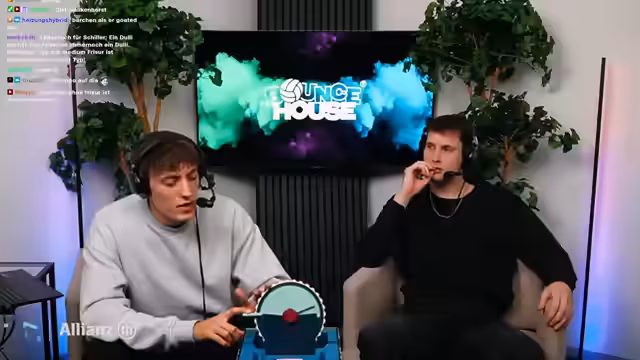 00:32:24Um die Wartezeit zu überbrücken, wird ein interaktives Spiel gestartet. Die Moderatoren erklären das Prinzip: Eine Kategorie wird vorgegeben (z.B. 'Spieler, mit denen man saufen gehen würde'), und der Chat schlägt Namen vor. Anschließend wird ein Glücksrad gedreht, das in positive oder negative Bereiche fällt, und die Moderatoren raten, welcher Name in den korrekten Bereich fällt. Das Spiel führt zu viel Interaktion und humvollen Diskussionen über verschiedene Spieler der Bundesliga.