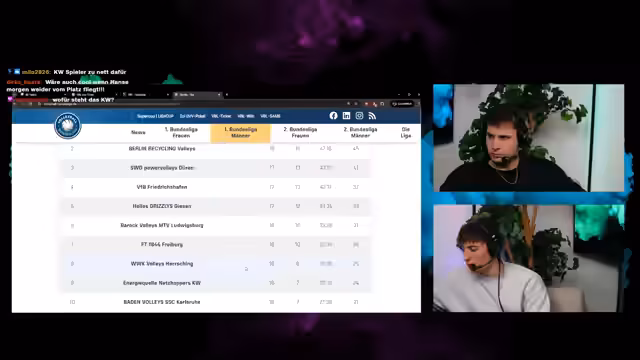 00:11:26Der Stream begrüßt die Zuschauer zum Bounce House mit einem richtungsweisenden Volleyball-Bundesliga-Duell zwischen Freiburg und den Netzhoppers. Beide Teams kämpfen um die Playoffs: Freiburg möchte den fünften Heimsieg in Reihe einfahren, während die Netzhoppers an gute recent Leistungen anknüpfen wollen. Als Experte ist Yannick Schiller im Studio, der einige Akteure persönlich kennt. Die Moderatoren stellen sich vor und sprechen über die Urlaube ihrer Kollegen Olaf und Dirk, die heute nicht dabei sind.