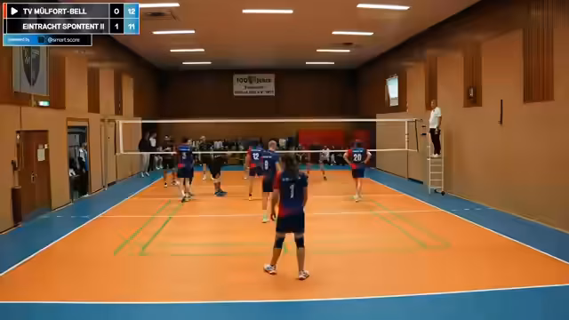 00:00:00Der Live-Stream beginnt im Bezirkspokal-Viertelfinale zwischen H2 und Mülfort Bell. Es handelt sich um den ersten von drei geplanten Spielen des Tages. Nach der Begegnung H2 gegen Mülfort Bell folgt das Spiel der Herren 1 gegen Kevelaer 2, und anschließend das Duell der Sieger. Der Kader von H2 ist stark dezimiert, es fehlt ein Zuspieler, weshalb der Skilehrer diese Position übernimmen muss. Dies erfordert eine Umstellung der Spielstrategie.