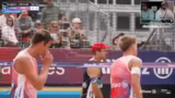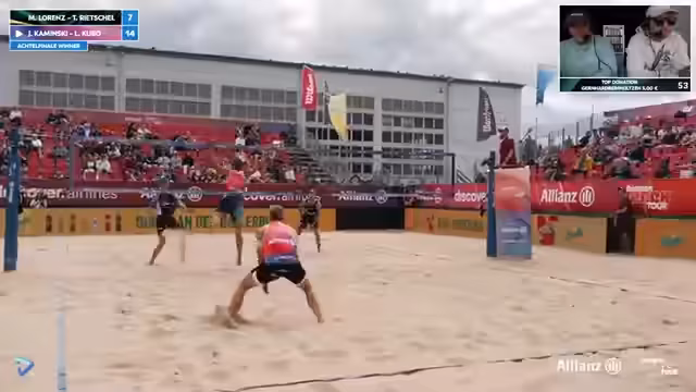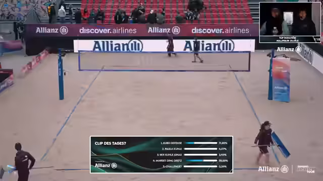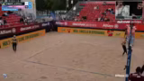 03:40:15Das Spiel zwischen Kunz/Paul und Meitho/Schäkel endete sehr deutlich mit 11-3 im ersten Satz. Die Kommentatoren lobten die Weltklasse-Aufschlagsleistung von Kunz/Paul, die dem gegnerischen Team keinerlei Chance ließ. Sie unterstrich damit die Favoritenrolle und versicherten, dass die beiden in der Form der Top-Teams der Tour zählen, auch wenn auf internationalem Niveau noch Luft nach oben ist.