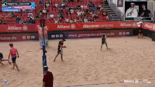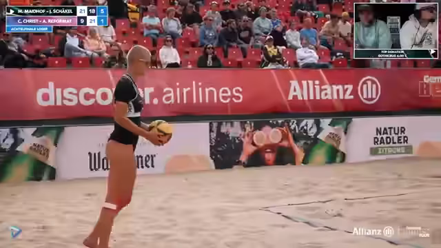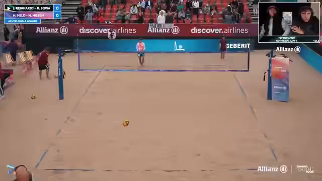 10:17:08Das Team Held/Nissen verliert den ersten Satz mit 11-16. Trotzdem wird deren hohe Favoritenrolle betont. Eine Umfrage im Chat zeigt, dass viele Zuschauer einen leichten Sieg der beiden gegen Reinhardt/Sova erwarten, nachdem sie im Finale der letzten Woche knapp gescheitert waren. Aufschlagfehler und Angriffsunsicherheit bei Held führen zu einem deutlichen Rückstand.