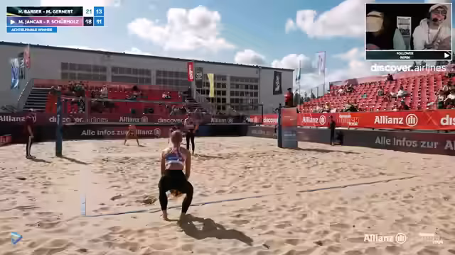 02:00:14Die Beach-Volleyball-Duelle sind geprägt von schnellen Führungsumschwüngen. Maret Meithoff beeindruckt als Blockerin, während Meli Gernhardt mit 73% Angriffsbeteiligung dominant auftritt. Ein Wendepunkt erreicht das Spiel, als Paula Schürholz einen sensationellen Block legt und prompt mit acht Punkten in Folge reagiert. Die Kommentatoren betonen die physische und mentale Kraft der Spielerinnen, insbesondere bei Side-Out-Spielen und unter widrigen Windbedingungen.