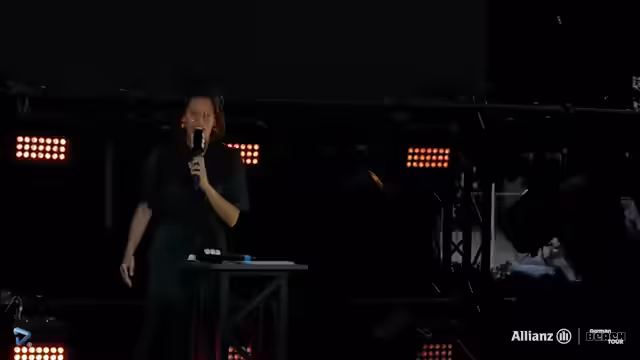 00:54:54Die offiziellen sportlichen Awards beginnen mit dem prestigeträchtigen 'Best Defender'-Award für die Damen. Laudator Martin stellt die Nominanten vor, darunter langjährige Tour-Teilnehmerinnen. Nach einer anscheinend technisch schwierigen Laudatio und einer球场-Szene wird der Award an Melanie Gernot vergeben, die sich sichtlich über die Auszeichnung und die Community-Abstimmung freut und in ihrer Dankesrede ankündigt, als Vizemeisterin mit 40 Jahren weitermachen zu wollen.