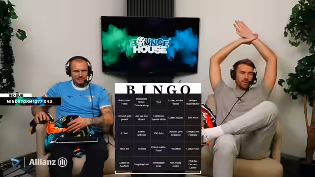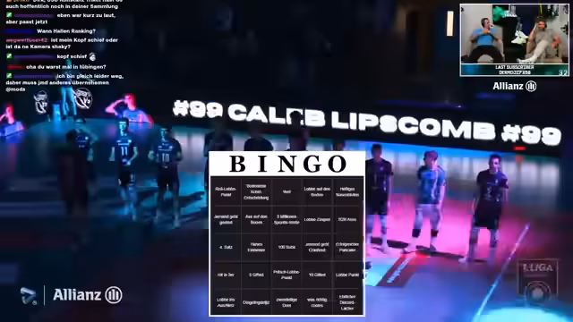 02:13:02Ab 02:13:02 konzentriert sich der Stream auf Schlüsselszenen wie den VAR-Check bei Grenzbällen und die Einwechslung von Reichert, die Berlins Spiel belebt. Die Community wird aktiv in eine Bingo-Challenge einbezogen, bei der Zuschauer durch Subs und Gifts Felder markieren können. Dirk kommentiert die zunehmende Spannung durch mögliche Bingo-Gewinne und die Rückkehr von Spielern wie Ruben Schott, während gleichzeitig die strategischen Entscheidungen der Trainer diskutiert werden.