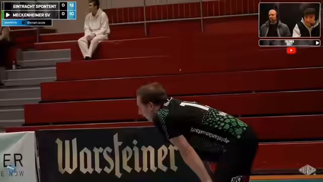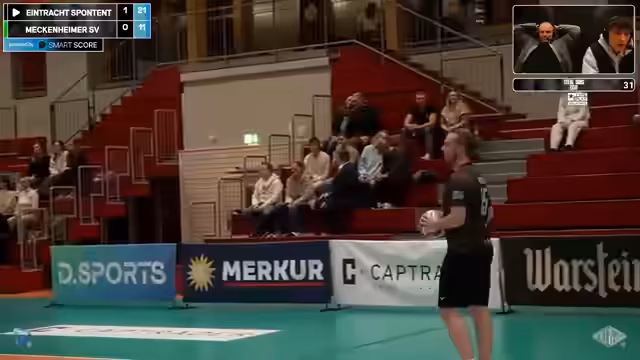 00:34:55Der Spielbeginn wird mit einer kurzen Vorstellung der Aufstellungen eingeleitet, wobei die Eintracht mit Ali als Aufschläger startet. Schnell werden die ersten Punkte erzielt, und es wird auf die starke Blockarbeit der Eintracht hingewiesen, die mehrere wichtige Block-Punkte erzielt. Meckenheim hat anfangs Probleme mit der Annahme und begeht mehrere Aufschlagfehler, was in Punkten für die Eintracht resultiert. Wichtige Ereignisse werden kommentiert: Ein schwerer Ballwechsel für Hugo von Meckenheim, der eine Verletzung riskiert, und der erste selbstverdiente Punkt für Meckenheim. Die Eintracht dominiert den ersten Satz, und es wird die Leistung von Spielern wie Schnippo und Anton gelobt, während das Bingo-Spiel mit markierten Ereignissen fortgesetzt wird. Der Host betont, dass das Spiel gut läuft, obwohl es zu vielen Aufschlagfehlern kommt.
