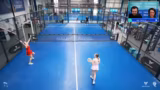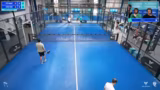 03:24:13Der Streamer involviert den Chat stark und beschließt spontan, ein Duell mit seinem Sohn Jonas auf dem Court zu verleihen, um die Wette zu klären, wer der bessere Paddelspieler ist. Allerdings geraten sie in eine hektische Suche nach passenden Schlägern und Gegnern. Nach einiger Organisation finden sie zwei Gegner, während Sally im Kommentar sitzen bleibt. Das Spiel dient als spontane Überbrückung und als kleine Unterhaltung für das Publikum.