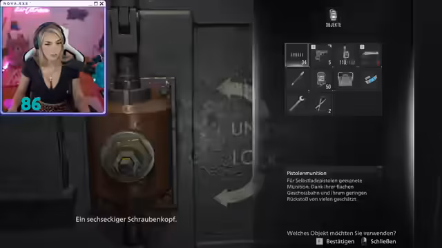 01:29:09Nach ausführlichen gesellschaftlichen Diskussionen wechselt die Streamerin das Thema und erwähnt den bevorstehenden Weltfrauentag, zu dem sie feministische Themen ansprechen möchte. Anschließend beginnt sie mit dem Spielen von 'Resident Evil'. Sie befindet sich in einer gruseligen Klinik, spielt als Charakter Grace und hat ein Pulsmesser, das ihre Erregung während des Spiels sichtbar macht. Ziel ist es, sich durch die Klinik zu kämpfen und Gegenstände zu craften.