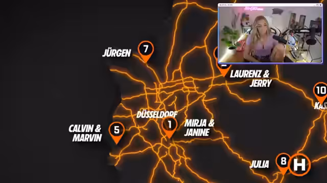 02:51:43Die Streamerin schildert die taktischen Überlegungen der Teams. Das Ziel Nummer 7, Jürgen, versucht, von Krefeld aus eine Mitfahrgelegenheit zu finden. Währenddessen setzen die Jäger alles daran, ihn zu stellen und nutzen die Tracking-Technologie, um ihn in Echtzeit zu verfolgen. Die Targets versuchen, sich durch das Ausnutzen von Connections und strategischen Manövern, wie dem Wechseln von Fahrzeugen, der Jagd zu entgehen.