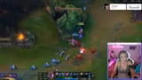 01:49:35Der Stream wechselt zur Gaming-Phase, bei der die Streamerin League of Legends auf dem ADC-Position spielt. Ihr Vorgehen ist gekennzeichnet durch eine kämpferische und teilweise übermütige Spielweise, die von emotionsgeladenen Reaktionen auf das Geschehen im Spiel begleitet wird. Sie verteidigt ihren Champion-Jinx vehement und spielt aggressiv, was zu intensiven Diskussionen über Spielentscheidungen im Chat führt.