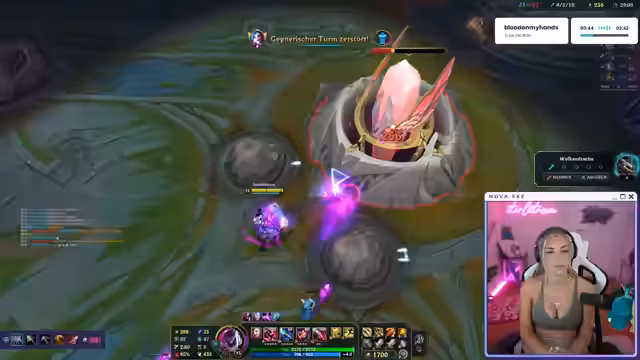 02:55:02Der Stream zeigt intensive League of Legends-Spiele, bei denen die Streamerin unter Zeitdruck steht und sich manchmal überfordert zeigt. Sie äußert große Angst überstanden zu haben und schildert kritisch die Performance ihrer Mitspieler. Besonders frustriert ist sie über Gegner, die keine Strategie erkennen, und findet deutliche Worte für die taktische Unfähigkeit des Gegnerteams. Sie betont ihre eigenen Erfolge im Spiel, wie das Nehmen von Türmen und Inhibitern, und sieht sich selbst auf dem Weg zu Gold, obwohl sie sich in Silber befindet.
