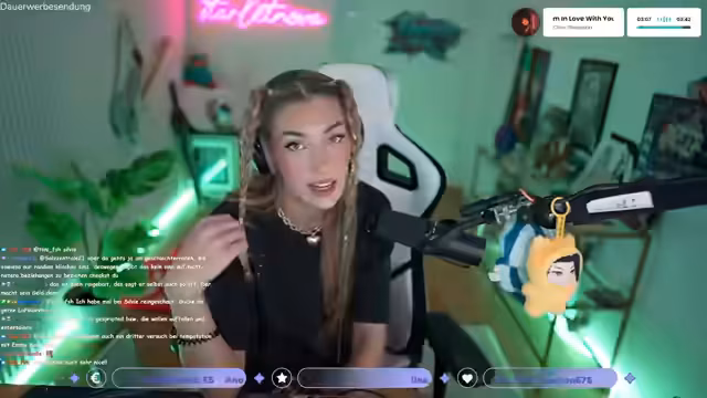 00:12:22Der Stream startet mit einer herzlichen Begrüßung des Chatraums. Die Streamerin berichtet von ihrem aktuellen Tag, darunter einem Spaziergang, den sie aufgrund einer Verletzung nicht ins Gym machen durfte. Sie spricht über ihren intensiven Daydreaming-Charakter, der besonders beim Laufen mit Musik aufkommt, und erwähnt, dass sie dies bereits seit ihrer Kindheit praktiziert. Dies unterstreicht ihre kreative und nachdenkliche Seite.