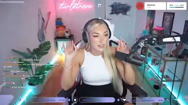04:19:06Der Stream endet abrupt, da die Streamerin starletnova eine Pause einlegen muss. Sie kündigt eine längere Unterbrechung an, da sie zur Gamescom verreist und die nächsten Tage sehr beschäftigt sein wird. Sie bittet das Verständnis an und verspricht, sobald möglich einen neuen Termin für den Stream bekannt zu geben. Die Streamerin bedankt sich bei den Zuschauern für ihre Unterstützung.