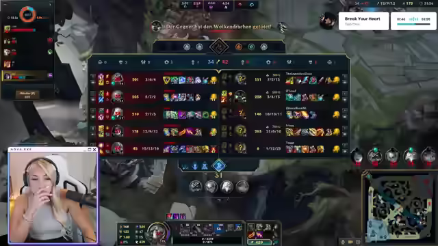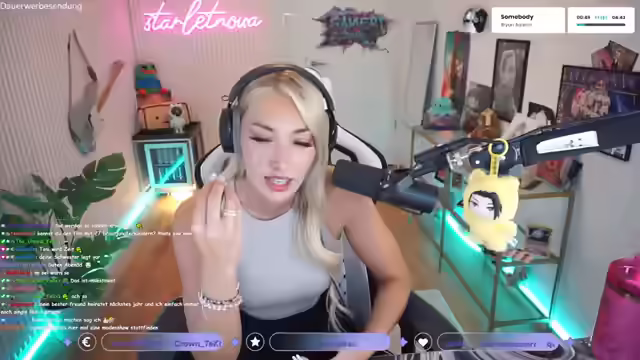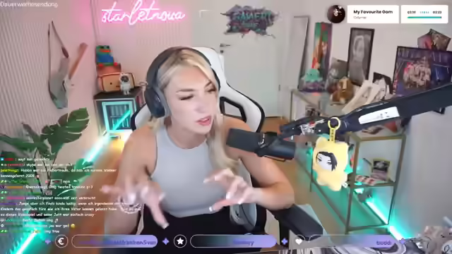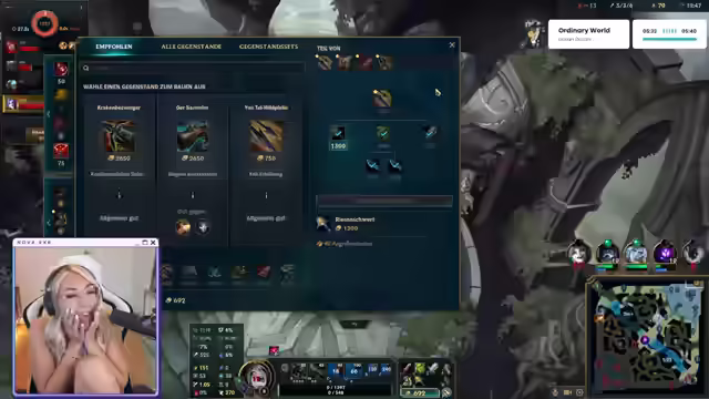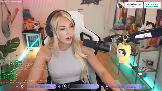 01:36:22Die Streamerin unterbricht kurz den Stream, um ihre Wäsche in den Trockner zu tun und fragt die Zuschauer, ob sie bereit für 'geilen Scheiß' sind. Sie wechselt zu League of Legends und äußert ihre Liebe für das Spiel. Auf die Frage nach ihrem Lieblingsskin antwortet sie, dass sie eigentlich alle Skins mag und zeigt ihre Shopping-Auswahl. Sie erwähnt den Zombieschächter-Skin für Jinx, ihren Main-Charakter, und bezeichnet Z als einen 'Guna-Charakter'. Es wird über Soulfighter Lux und Xayah-Skins gesprochen, sowie über Battle Bunny Miss Fortune und Schreckensnacht Draven. Die Streamerin kommentiert den Female Fanservice und die Zensur und wünscht sich weg von der Arbeit. Sie bedankt sich für ein Geschenk und überlegt, ob sie sich auf ihrer Xayah-Confident genug für ein Ranked-Spiel fühlt, könnte sich aber Kaiser vorstellen, da sie diese gut verstanden hat. Sie erwähnt einen Kumpel mit über 1000 Skins und lobt Riot für ihr Geschäftsmodell, bei dem das Spiel kostenlos ist, aber kosmetische Veränderungen (Skins) für etwa 15 Euro pro Stück verkauft werden.
