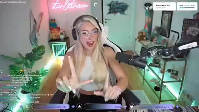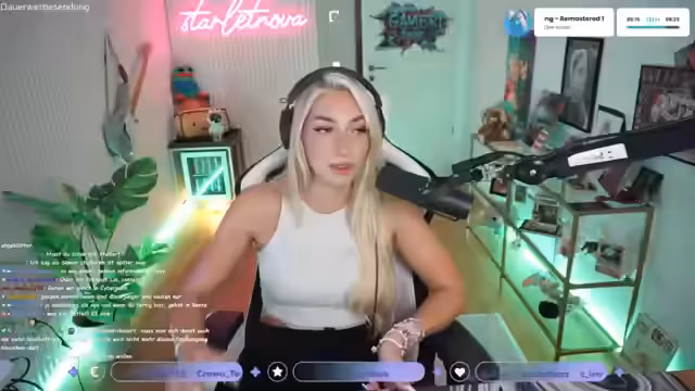 02:21:23Ein unerwarteter Höhepunkt ist eine plötzliche Anfrage für eine Zusammenarbeit von Vanguard, einer Figur, die behauptet, aus Norwegen zu kommen und Deutsch zu sprechen. Nach anfänglicher Verwirrung und technischen Schwierigkeiten beginnt ein unkonventionelles Gespräch, in dem der Nutzer die Streamerin als dominant und attraktiv beschreibt und die Beziehung zwischen Streamer und Community thematisiert.
