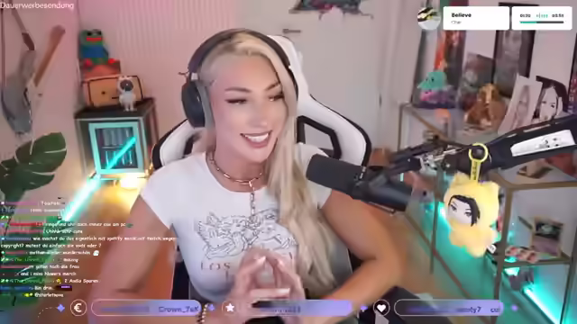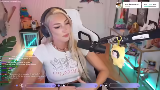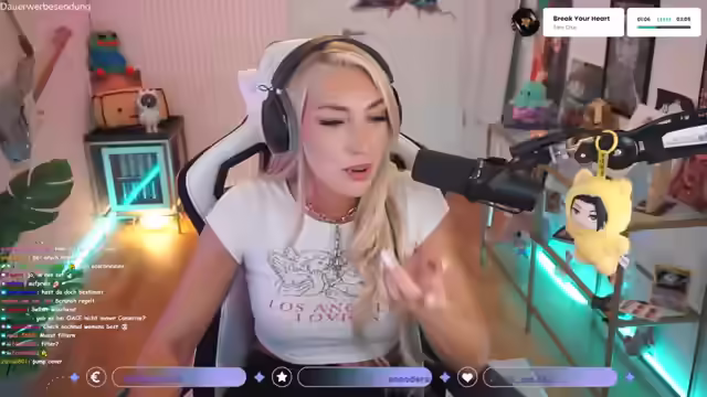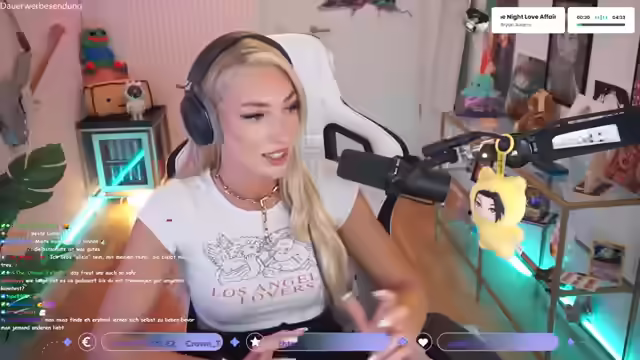 00:34:45Die Streamerin gibt einen Ausblick auf die kommende Woche, einschließlich eines Treffens mit ihrem Management, eines Drehs für YouTube und der Teilnahme an zwei Events, wodurch weniger Zeit zum Streamen bleibt. Sie erwähnt auch ihre Reise nach Kroatien zu einer Hochzeit. Es wird ein IRL-Stream mit einem Gast angekündigt. Die Streamerin spricht über ihre Vorliebe für das erste Kleid für die Hochzeit und das Herkules-Kleid für ein Dinner. Sie äußert sich positiv über das Team gestern und ihre wachsende Confidence beim Auflegen, was sie dazu bewegt, den nächsten DJ-Stream ohne Gast zu planen. Der Plan für den heutigen Stream ist ein entspanntes Gespräch mit den Zuschauern, da sie sich müde fühlt. Sie spricht über ihre Vorliebe für Asos, da es dort Hosen in ihrer Größe gibt und man sich den Stress in Umkleidekabinen spart. Die Streamerin erzählt von ihrer ersten Kundin zum Wimpern machen und zeigt ihre Jutsu Kaisen und Naruto Merchandise Artikel. Sie spricht über ihre Vorliebe für Labubu Figuren und findet die Story dahinter sehr süß.