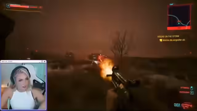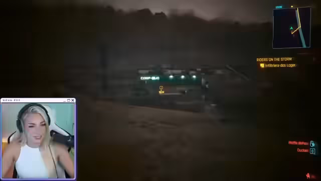 04:05:28Zu Beginn des Stream-Segments konzentriert sich die Streamerin auf das aggressive Vorgehen während der Infiltration des Lagers. Sie äußert ihre Begeisterung über den brachialen Fit der Mission und erwähnt eine Entdeckung: Um mit der Figur Panam eine Beziehung eingehen zu können, muss man im Spiel einen männlichen V. wählen. Während des Eindringens ins Lager kommt es zu ersten Schusswechseln, bei denen sie vorsichtig agiert und ihre Figur strategisch in Deckung geht.
