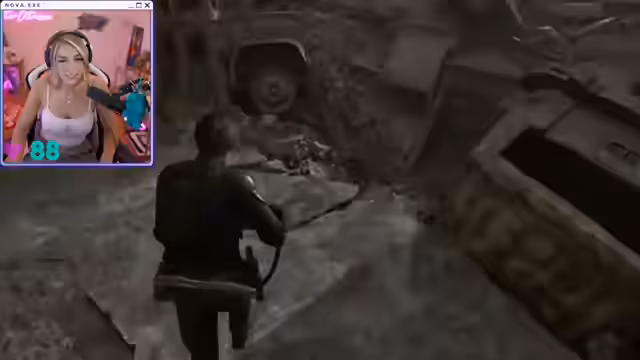 02:38:43Während des Spiels 'Resident Evil' interagiert die Streamer intensiv mit der Spielfigur 'Leon' und der Spielwelt. Sie äußert sich über ihre Aufregung und die Action-Szenen, schimpft während des Kampfes mit Zombies und bewundert die Grafik und das Gameplay. Ihr Verhalten ist eine Mischung aus Faszination und Anspannung, wobei sie sich oft selbstironisch über ihre Reaktionen lustig macht und den Chat in ihre Entscheidungen und Erlebnisse einbezieht. Sie versucht, Ressourcen zu finden und Rätsel zu lösen, während sie ständig von Gegnern bedroht ist.