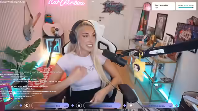 00:20:26Ein großes Thema sind die beruflichen Neuigkeiten. Die Streamerin kündigt an, nächsten Woche den Blauen Panther mitmoderieren zu dürfen, einen Fernsehpreis und Streaming Award, gemeinsam mit Kati Hummels. Sie betont, wie dankbar und aufgeregt sie über diese große Chance ist, die ihr ermöglicht, ihr Moderationstalent auch im Fernsehen zu zeigen. Ebenfalls erwähnt sie ihre Moderationstätigkeit für Streamergarten beim ZDF.