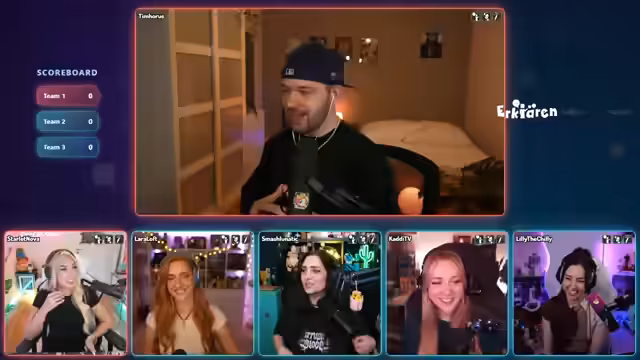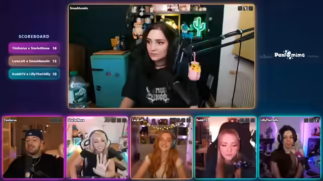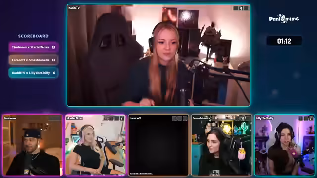 05:10:22Die neuen Teams für die zweite Runde werden vorgestellt: Tim Horus, Lara Loft und KDTV gegen Starlet Nova, Lily the Chili und Smash Lunatic. Die Streamerin kündigt an, mit Pantomime zu beginnen. Die Runde startet mit Begriffen wie 'Überrascht sein', 'Handschellen' und 'Bier', wobei es zu einigen Schwierigkeiten beim Erraten der Begriffe kommt. Es folgen Begriffe wie 'Briefkasten', 'Messer' und 'Geschirrspüler', wobei die Zeit abläuft, bevor alle Begriffe erraten werden können. Die Streamerin kommentiert die Schwierigkeit der Begriffe und die verpassten Punkte. Es wird diskutiert, wer die nächste Kategorie auswählt, und Lara und Nova zeigen ihren Einsatz. Die nächste Pantomime-Runde beginnt mit Begriffen wie 'Herzinfarkt', 'Schreihals', 'Kreislauf', 'Hitzeschlag' und 'Nussknacker', wobei das Team erfolgreich ist und viele Begriffe errät. Die Streamerin lobt die Leistung der 'Ladies'. Lara wählt die Kategorie 'Zeichnen' für die nächste Runde.