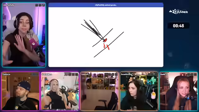 05:03:45Die Streamerin kommentiert den Punktestand und motiviert Kadit, Punkte aufzuholen. Es wird erwähnt, dass Lara gut zeichnen kann und dies nun unter Beweis stellen muss. Es wird ein 'Zeichentest' für Lily the Chili angekündigt, und es wird darauf hingewiesen, dass bei Problemen die Browser-Beschleunigung angepasst werden muss. Die Runde startet mit Begriffen wie 'Messerstich', 'Stichwunde', 'Verband' und 'Nagel', wobei die Kommunikation zwischen den Spielern verbessert wird. Nach der Runde wird das Gewinnerteam bekannt gegeben: Lara Loft und Smash the Netlake. Die Streamerin schlägt vor, die Teams zu wechseln und Dreierteams auszuprobieren, was vom Chat positiv aufgenommen wird. Die Streamerin richtet die Teams ein und kündigt eine Toilettenpause an. Tim erzählt einen Witz, während die Streamerin abwesend ist. Die Teamnamen werden angepasst, und es wird erklärt, dass Dreierteams lustiger sein könnten, da mehr Leute mitraten können.