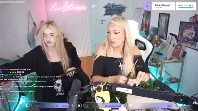 00:11:39Die Streamerin zeigt sich von ihrem eingerichteten Raum inspiriert, insbesondere von einem Teppich, der den Raum wie ein Podcast-Set aussehen lässt. Dies führt zu einer spontanen Diskussion über die Möglichkeit, einen eigenen Podcast zu starten. Sie überlegt, ob sie als Podcast-Gast geeignet sei und wie ein solches Format aussehen könnte. Der Vorschlag für kurze, 15 bis 30-minütige Folgen wird im Chat besprochen und sie bewertt die eigene Begeisterung für die Idee auf einer Skala von eins bis zehn.