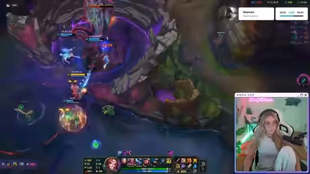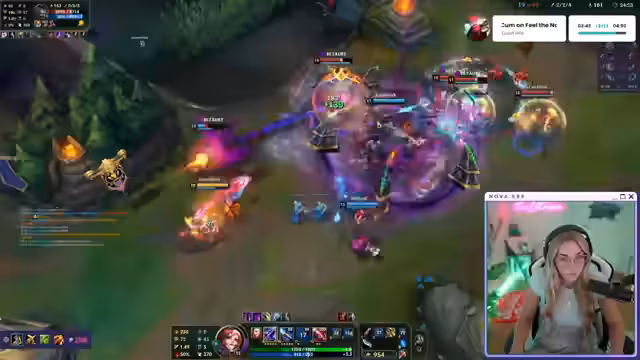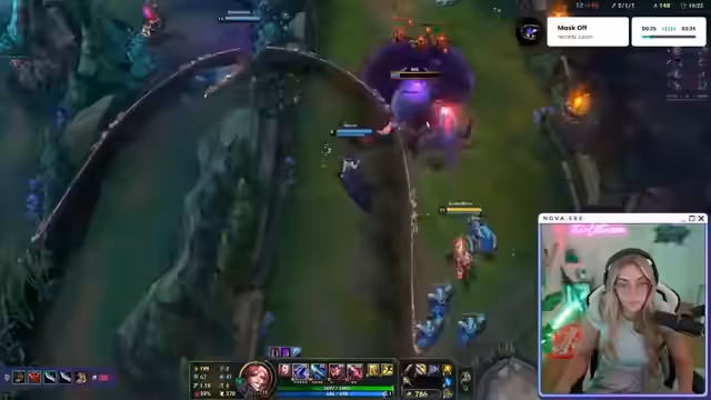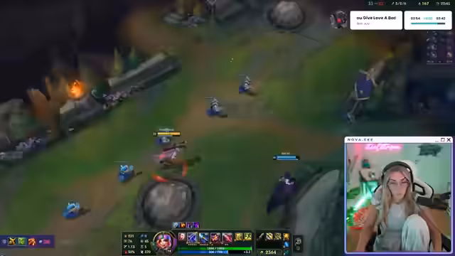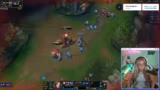 01:01:59Nach einer kurzen Pause beginnt die Streamerin das Spiel League of Legends. Sie spielt den Champion Vayne in der Bot-Lane und agiert vorsichtig und abwartend, um nicht zu früh in einen Tod zu laufen. Im Laufe des Spiels gelingt es ihr, einige Kills zu holen und sich einen kleinen Vorteil zu sichern. Ihr Fokus liegt darauf, den Drachen zu kontrollieren und den Druck auf der anderen Bot-Lane aufrechtzuerhalten, während sie gleichzeitig auf die Position des gegnerischen Zed achtet.