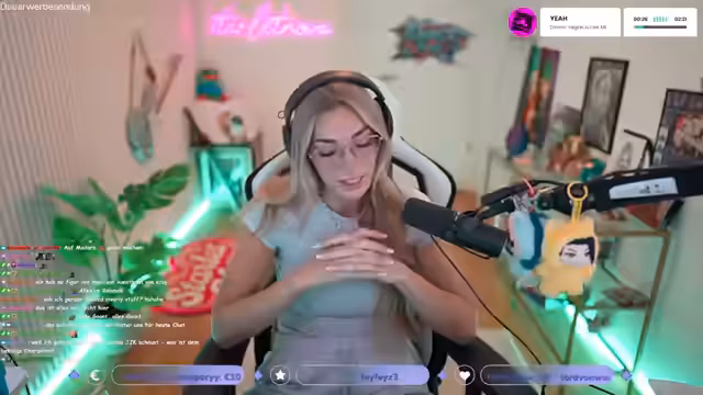 00:10:57Der Stream beginnt mit einer Begrüßung des Chats und einem Kommentar zum gerade laufenden Song. Die Streamerin erwähnt, dass sie heute etwas später startete, weil sie erledigen musste, da sie Montag nach San Francisco fliegt. Sie kündigt an, dass heute eine Runde League of Legends gespielt wird, nachdem sie sich lange nicht mehr dem Spiel widmete. Auch wird eine Reise nach Schweden im Sommer ins Auge gefasst, wo sie zocken möchte. Zuvor spricht sie über ihren neuen Mikrofon, das bessere Audioqualität verspricht.