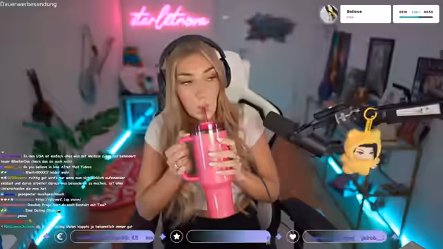 00:11:07Der Stream beginnt mit persönlichen Begrüßungen und einem Wunsch für einen 'Big Money Mindset Montag'. Die Streamerin berichtet über eine gesundheitsbedingte Pause, aufgrund einer Halsentzündung im Mittelohr, die sie zu einem Streamabbrim zwingt. Sie teilt ihre Freude über den bevorstehenden Sommer aus, da sie plant, einen 'menschengemachten Mikrobikini' zu tragen und sich stark bräunen zu wollen. Im Anschluss spricht sie über ihre Ambitionen im Fitnessstudio und freut sich darauf, ihre trainierten Muskeln, insbesondere die Oberarme, zu präsentieren. Sie empfindet ihren Körper als 'Kampfwerk' und ist offen für Textilfreiheit, jedoch kritisch gegenüber FKK-Stränden, die sie als Treffen für Rentner und kleine Kinder empfindet.