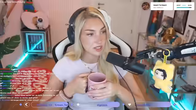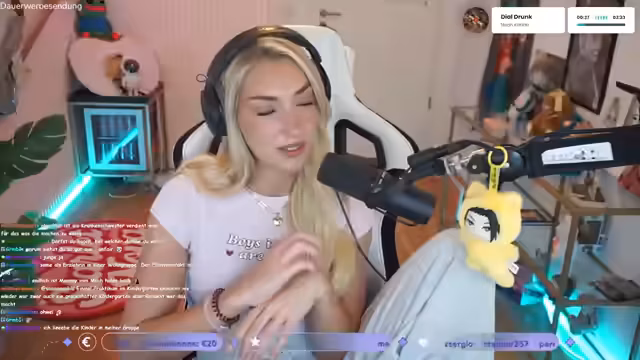 00:11:28Nach einer längeren Abwesenheit meldet sich die Streamerin zurück und teilt Eindrücke ihrer Reise nach Taiwan und Hongkong mit Tina. Sie erwähnt einen In-Real-Life-Stream, der während des Urlaubs stattfand, und spricht über die Herausforderungen der Zeitverschiebung. Die Streamerin zeigt sich sehr glücklich und angekommen, genießt einen gemütlichen Tee und kündigt an, wieder aktiver auf TikTok und Reels zu sein, da ihr das Schneiden von Videos viel Freude bereitet. Sie war auch wieder im Fitnessstudio, was sie sehr vermisst hat, und freut sich darauf, wieder richtig Gas zu geben. Es wird überlegt, am Sonntag einen Back-Stream zu veranstalten, möglicherweise mit Vanillekipferln und Zimtsternen. Die Idee, Rezepte vorab zu teilen, damit der Chat mitbacken kann, wird positiv aufgenommen. Zudem plant die Streamerin, ihre Haarfarbe zu ändern, um einen natürlicheren Look zu erzielen, obwohl sie sich im Herzen immer noch als "Barbie-Girl" sieht.