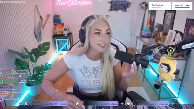 02:21:32Das Spiel League of Legends beginnt, wobei die Streamerin und ihr Team in Bronx spielen. Die Streamerin zeigt ihre Begeisterung für das Spiel und interagiert mit dem Chat. Sie erzählt von einem früheren Minecraft-Spiel und von ihrem Setup, das sie als 'Raver-Wohnung' beschreibt, was zu Diskussionen über Streaming-Stile und persönliche Aussehen führt.