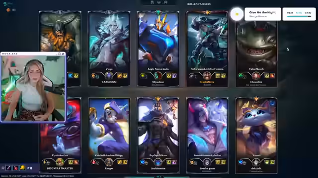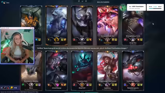 00:37:56Nach diversen persönlichen Anekdoten über ihre Musikvorlieben und Konsumentscheidungen, bereitet sich die Streamerin auf ihr erstes League of Legends-Spiel vor. Sie wählt den Champion Samira aus, um wieder mehr Confidence zu entwickeln, besonders nach enttäuschenden Erfahrungen mit Draven. Die Musik wechselt zu 'Performative Male' und 'Hardstyle', was ihre anfängliche Energie und den Fokus auf das bevorstehende Spiel widerspiegelt, das sie als 'herrlich' und 'Peak Leben' beschreibt.