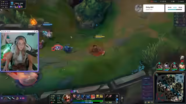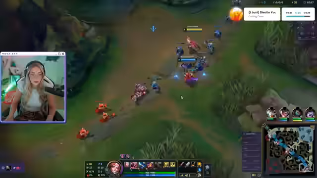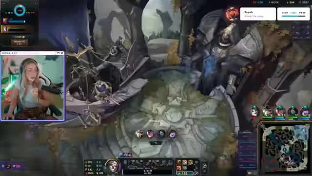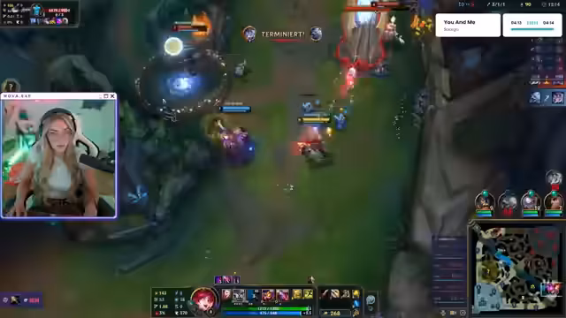 03:01:46Die Streamerin zeigt sich während des Spiels zunehmend frustriert über die eigene Performance und die des Teams. Sie kritisiert sich selbst für Fehlentscheidungen und greift im Verlauf des Spiels eher in sich hinein, anstatt das Team zu flamen. Insbesondere eine prekäre Situation auf der Bot-Linie, in der sie sich überfordert fühlt, führt zu einem verbalen Ausbruch, bei dem sie ihren Tod als kacke bezeichnet und ihre Nervenfäden blank liegen sieht.