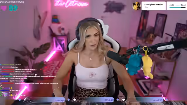 01:53:27Nach einer längeren Diskussion über Swingerclubs und deren Ausstattung wechselt der Stream abrupt zu anderen Themen. Sie präsentiert dem Chat verschiedene TikTok-Videos und kommentiert diese enthusiastisch, insbesondere im Hinblick auf Retro- und Otzy-Outfits. Ihr größtes Interesse gilt jedoch der bevorstehenden Gamescom. Sie kündigt an, am Samstag vor Ort zu sein und eventuell zu streamen, wobei sie unsicher ist, wie sich die Umgebung auf ihre Streaming-Qualität auswirken wird. Des Weiteren erwähnt sie die 'Win-Challenge', ein Event bei der Gamescom, bei dem sie um den Sieg bei einem Videospiel kämpfen wird, das sie als 'technische Wurzelbehandlung' beschreibt.
