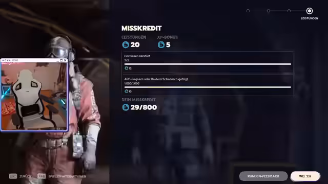 03:22:55Die Streamerin beginnt den Stream mit technischen Unannehmlichkeiten. Sie kündigt an, nicht am Folgetag streamen zu können und versucht, Squad im Spiel Arc Raiders zu finden oder alleine zu starten. Nach anfänglichen Problemen mit der Spielsteuerung und der Audioeinstellung gelingt es ihr, den Sound zu korrigieren und das Spiel zu laden. Sie bewundert die Grafik des Spiels und erkundet anfangs die Spielwelt, wobei sie Ressourcen und Beute sammelt.
