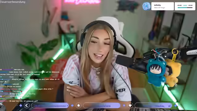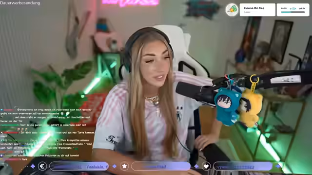 00:09:43Der Stream beginnt mit einem freundlichen Willkommen an die Zuschauer, gefolgt von einem Überblick über das persönliche Leben der Streamerin. Sie erwähnt, dass die Woche frei von Terminen ist und sie sich stattdessen auf Streaming konzentrieren kann. Nach einem Einkauf bei Aldi, bei dem sie rosa Kochtöpfe erstand, und der Anbringung von Wimpernextensions, beschreibt sie sich selbst als 'Make-up-Fresse' und betont, dass sie dies nie ändern wird. Ihre positive Stimmung wird durch die Aussage geprägt, dass es für sie 'Peak' ist, die ganze Woche mit der Community zocken und Leaks spielen zu können.