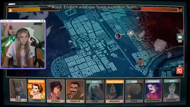 02:10:08Nach einer ausführlichen Diskussion über Körpergröße wechselt der Stream zum Gameplay des Titels 'Dispatch'. Die Streamerin stellt die Heldengruppe vor und beginnt mit der ersten Mission, bei der sie den Bürgermeisterflughafen beschützen soll. Dabei zeigt sie strategisches Denken, indem sie die Stärken der einzelnen Helden analysiert und aufeinander abstimmt. Es kommt zu einem ersten Konflikt mit einem Gangsterboss namens 'Flambay', den die Gruppe aber schnell überwinden kann.