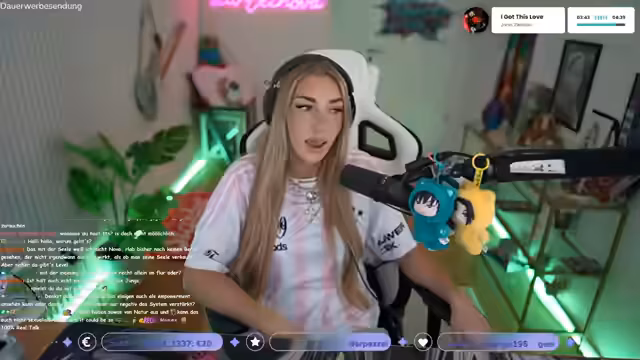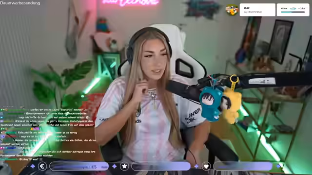00:22:22Die Streamerin reflektiert über ihre Karriere als Moderatorin. Sie erzählt von ihrem Debüt in der Lanxess Arena als Field Reporter für ein Fußball-Event, das nur sechs Stunden zuvor angekündigt wurde. Dieses Erlebnis, das sie stark verunsichert hat, war ein Meilenstein, der ihr Selbstvertrauen schulte und sie zu einer 'certified Moderatöse' machte. Sie ermutigt die Zuschauer, trotz Ängste ihre Träume zu verfolgen. Außerdem teilt sie persönliche Geschichten, wie die Einnahme einer Hormonspirale, die zu starken Schmerzen führte, und ihren Humor, indem sie den League-of-Legends-Spieler Draven als 'Psycho' bezeichnet.