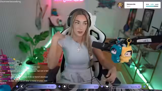 01:32:00Der Stream konzentrierte sich stark auf das Spielen des Spiels "Dispatch", bei dem es um das Management einer Gruppe von Helden ging. Es wurde auf die Entwicklung der Beziehungen zwischen den Charakteren, insbesondere zwischen den "Baddies" Blond Blazer und Invisigal, eingegangen. Die Spielerin wählte für ein Date Blond Blazer, da sie sich stark mit der Identifikation als "Baddie" und "Mama" identifizierte. Auch die Figuren Waterboy und Flambe wurden besprochen, und eine romantische Verbindung zwischen ihnen wurde von der Chat-Community inszeniert. Das Gameplay war gekennzeichnet durch wiederkehrende Kämpfe und Entscheidungen, bei denen die Helden-Statistiken wie Mobilität, Charisma und Intellekt eine wichtige Rolle spielten.
