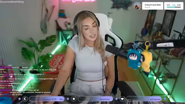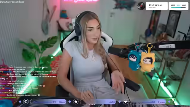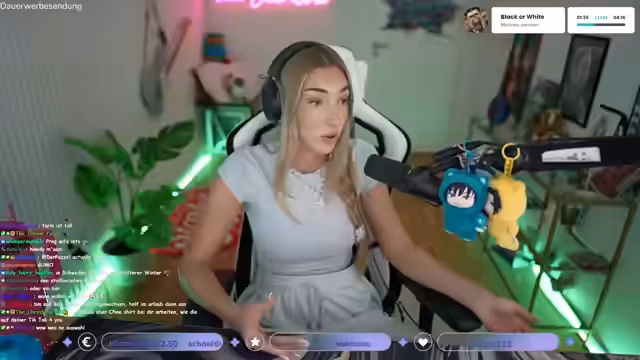 00:16:26Die Streamerin berichtet über aktuelle Projekte. Sie hat mit dem Künstler Max Leinfelder ein gemeinsames Bild gemalt, von dem es bald Prints geben wird. Zudem ist sie in einer YouTube-Doku zum Thema Streaming sowie in einer Story des Genus-Kanals zu sehen. Sie zeigt sich dankbar für die Teilnahme und gibt an, begeistert von den Ergebnissen zu sein. Gleichzeitig denkt sie darüber nach, ihre Haare wieder zu färben, und zeigt ein altes Video von sich mit hellblonden Haaren.
