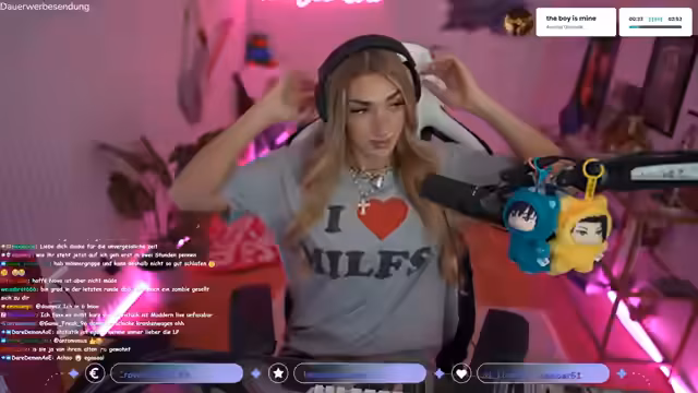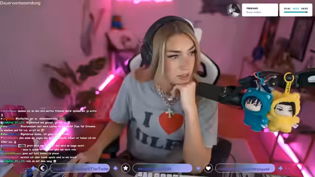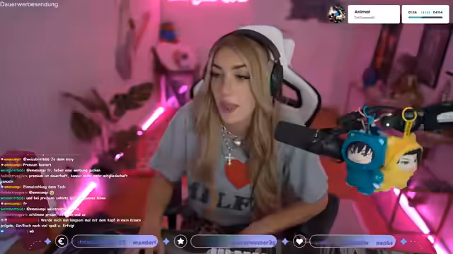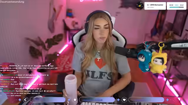 00:53:42Die Streamerin thematisiert mögliche Einschränkungen für Twitch-Partner, die auf anderen Plattformen wie Instagram live gehen könnten. Sie vermutet, dass eine Exklusivklausel dies früher verboten haben könnte, gibt aber an, dass dies vielleicht nicht mehr der Fall ist. Anschließend wechselt sie das Thema zu persönlichen Eigenschaften und körperlichen „Besonderheiten“. Sie erwähnt, dass sie lachen und rülpsen kann, aber aus gesundheitlichen Gründen nur stilles Essen trinken kann.