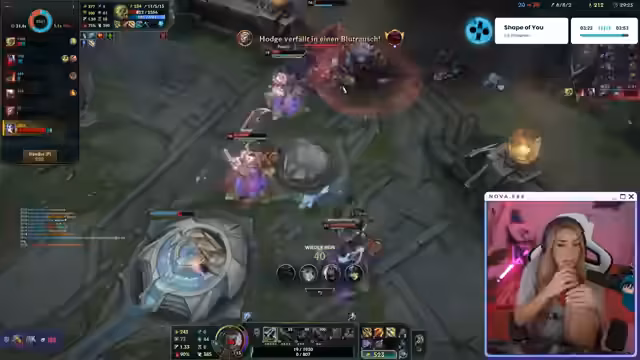 00:03:39Während des Spiels äußert die Streamerin erhebliche Frustration über ihre eigene Leistung und das Spielgeschehen. Sie fühlt sich nutzlos und ist sauer auf den gegnerischen ADC, der mit 4 Kills einen großen Vorsprung hat. Ihr eigenes战绩 ist negativ, und sie kritisiert das Team für das völlige Scheitern auf der Botlane. Sie sieht sich selbst als Opfer und beschreibt die Situation als "prügelnd" und nicht mehr "fickend", was ihre mentale Belastung zeigt.